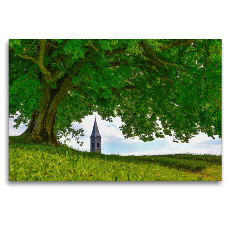 Kirchturm unterm Kastanienbaum in Adams im Allgäu