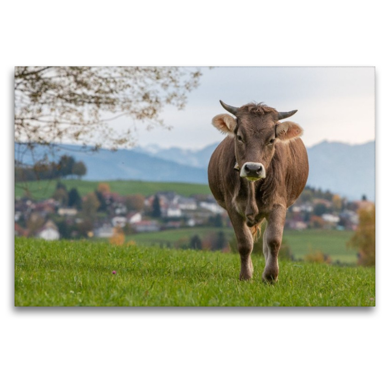 Original Braunvieh auf der Weide bei Scheidegg. Ob als Wandbild oder als Puzzle liefert dieses Bild etwas Allgäu für zuhause. Die sanften Riesen strahlen Gemütlichkeit und Ruhe aus.