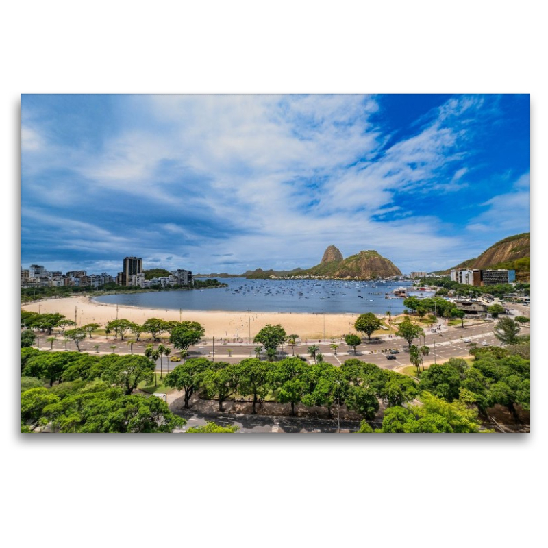 Die Dynamik der Stadtstraße trifft auf die Ruhe der Bucht. Ein Weitwinkel-Meisterwerk, das die Architektur Rios und die natürliche Form der Küste in einer perfekten Balance vereint. Strahlende Farben und tiefe Kontraste.